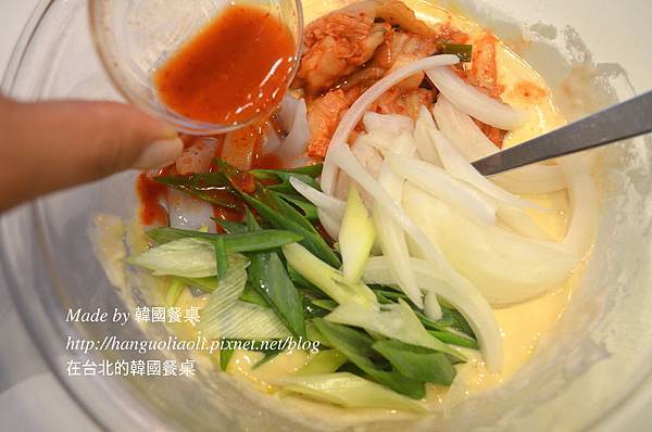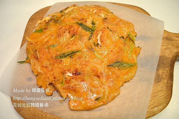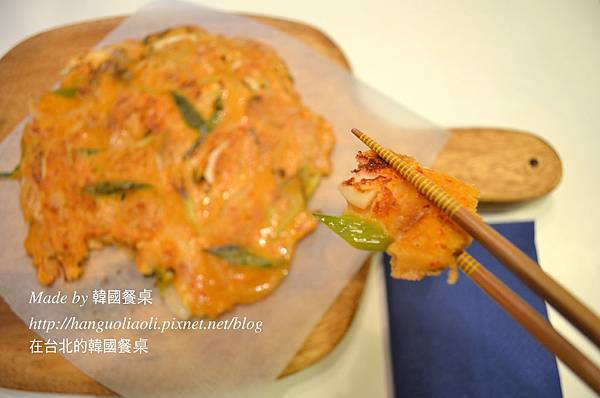 用辣泡菜和有嚼勁的魷魚輕鬆做泡菜煎餅